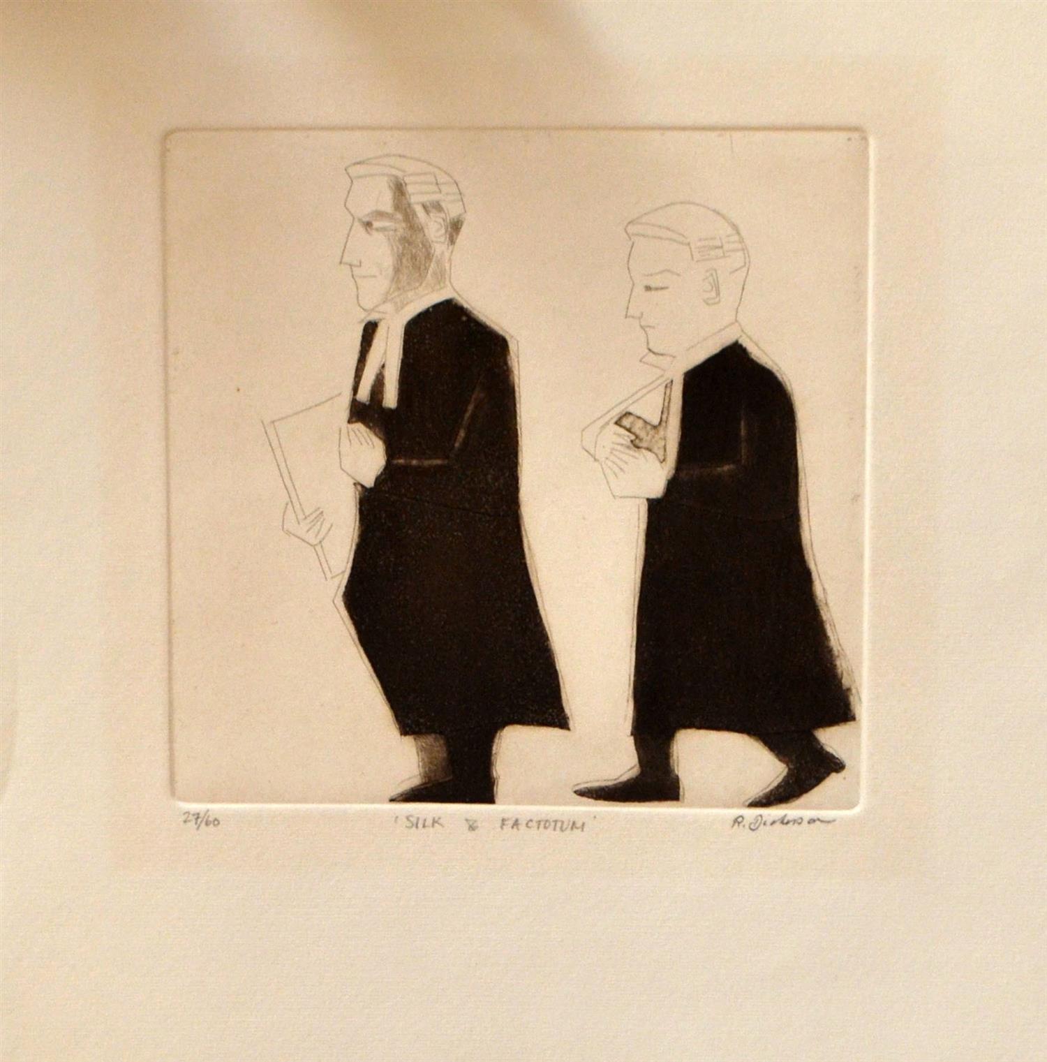 ROBERT DICKERSON, SILK AND FACTOTUM, ETCHING 27/60, 26 X 26CM, UNFRAMED, CONDITION: VERY GOOD