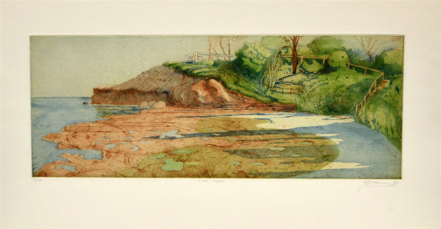 JOHN SPOONER, TABLE ROCK 1986, ETCHING 13/20, 24 X 60CM (IMAGE SIZE), UNFRAMED, CONDITION: VERY GOOD