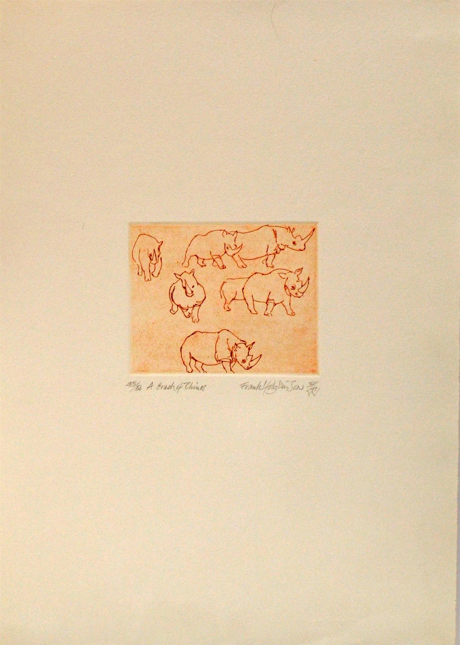 FRANK HODGKINSON, A CRASH OF RHINOS 1991, ETCHING 43/50, 12 X16CM (IMAGE SIZE), UNFRAMED, CONDITION: VERY GOOD