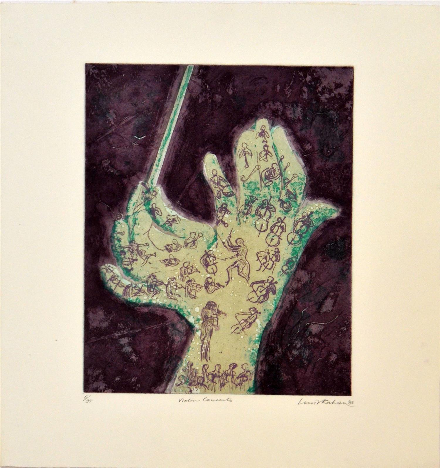 LOUIS KAHAN, VIOLIN CONCERTS 1998, ETCHING 6/95, 40 X 30CM, UNFRAMED, CONDITION: VERY GOOD