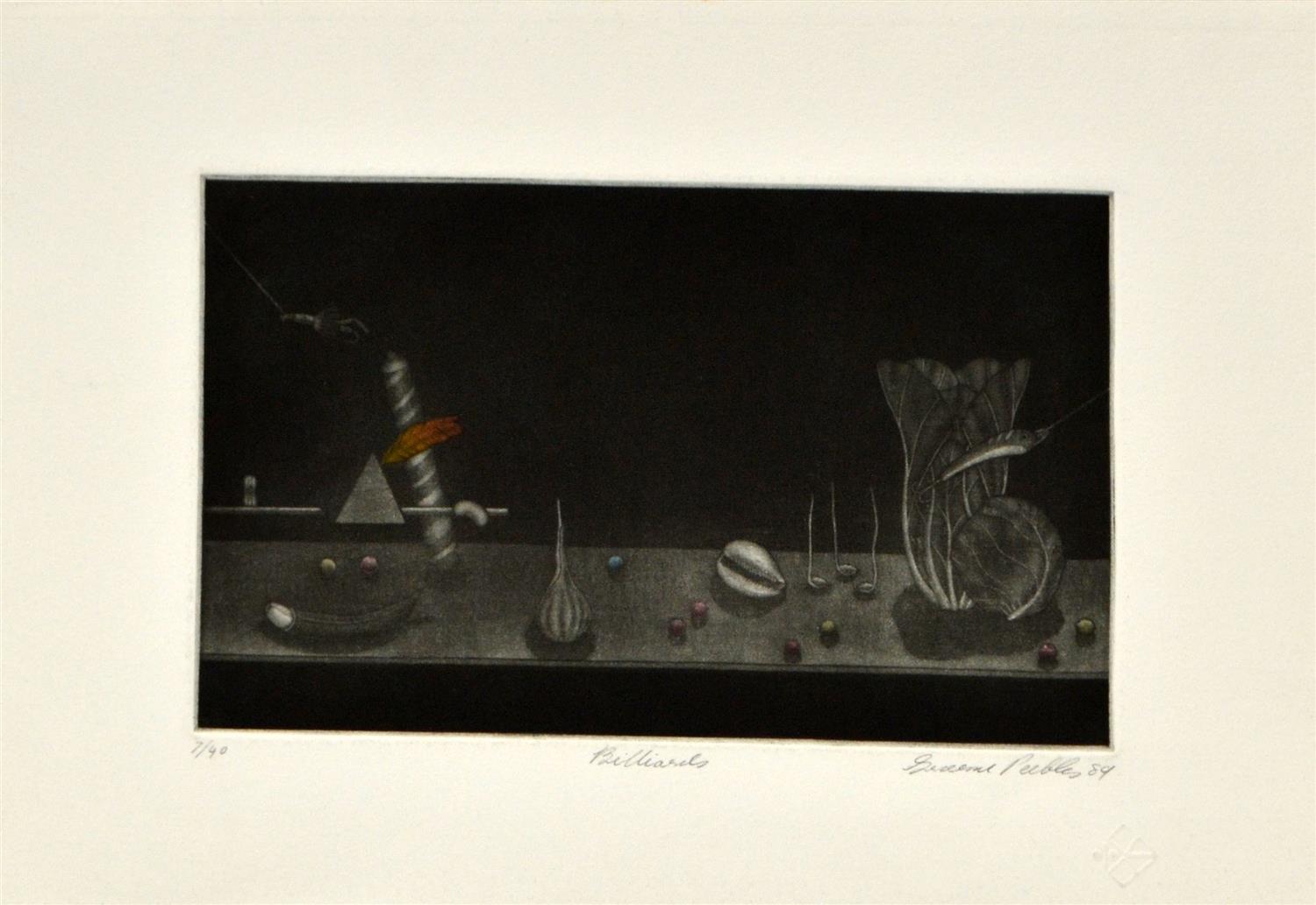 GRAHAM PEEBLES, BILLIARDS 1989, ETCHING 7/40, 15 X 25CM (IMAGE SIZE), UNFRAMED, CONDITION: VERY GOOD