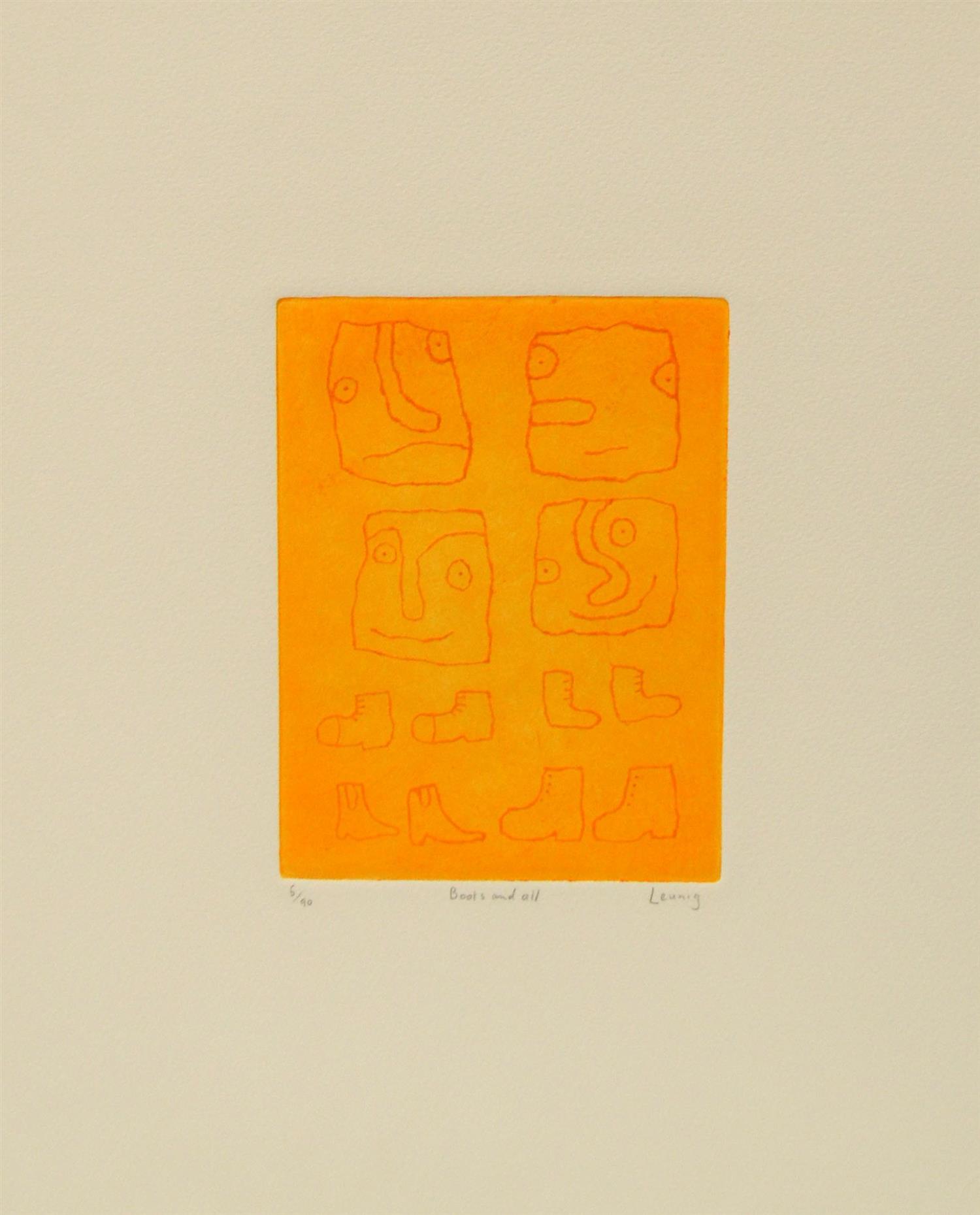 MICHAEL LEUNIG, BOOTS AND ALL, ETCHING 5/90, 20 X 15CM (IMAGE SIZE), UNFRAMED, CONDITION: VERY GOOD