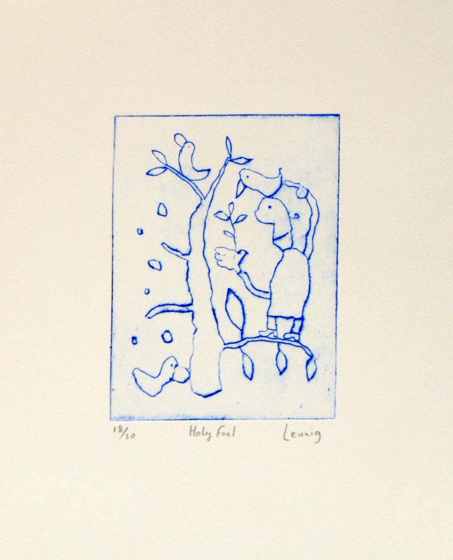 MICHAEL LEUNIG, HOLY FOOL, ETCHING 18/50, 15.5 X 11.5CM (IMAGE SIZE), UNFRAMED, CONDITION: VERY GOOD
