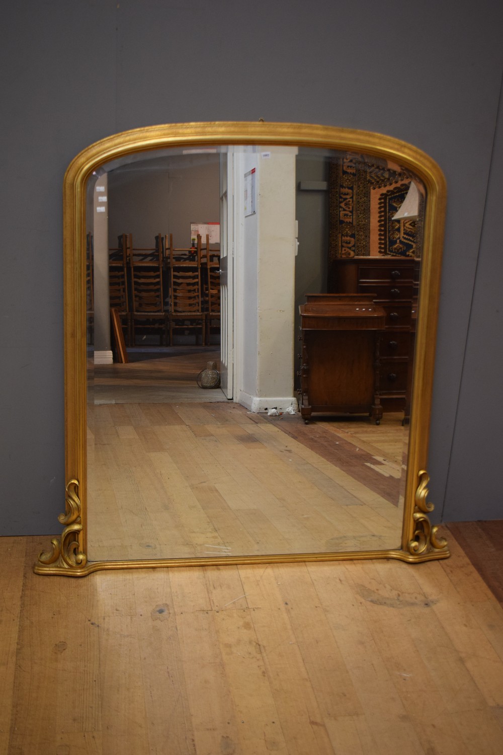 A LARGE GILT OVERMANTLE MIRROR (134H X 112W)