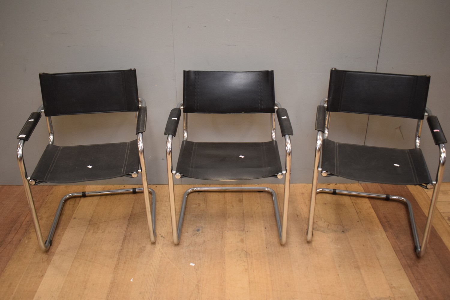 THREE CONTEMPORARY CHROME AND VINYL CHAIRS