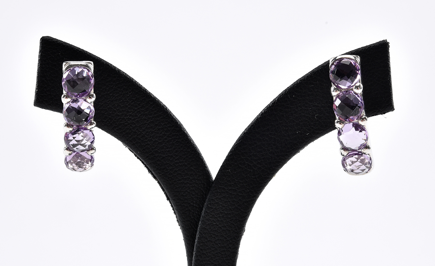 A PAIR OF AMETHYST SET EARRINGS IN SILVER