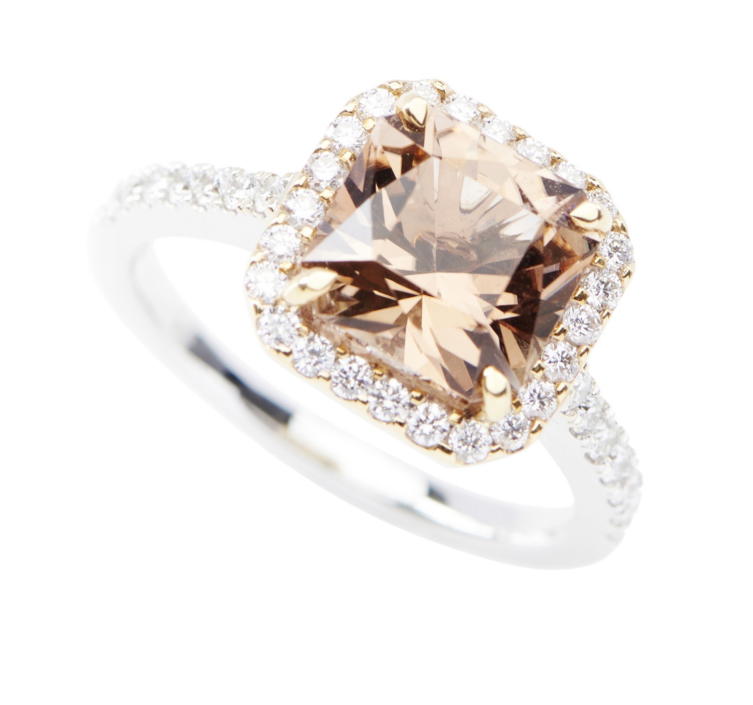 A THREE STONE DIAMOND RING - Featuring a princess cut diamond weighing an estimated 1.05cts, flanked by princess cut diamonds totall...
