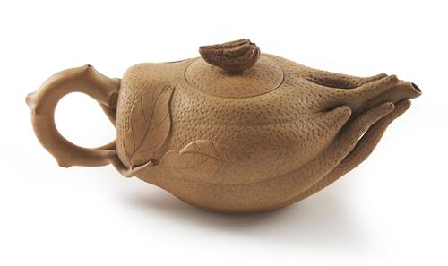 Naturalistically modelled as a finger citron in light brown clay, with impressed seal mark reading 'Jinfu', possibly for Fan Jinfu.