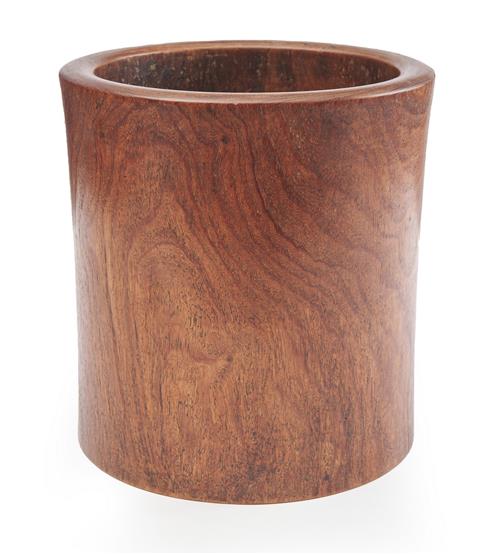 A LARGE CHINESE HARDWOOD BRUSHPOT