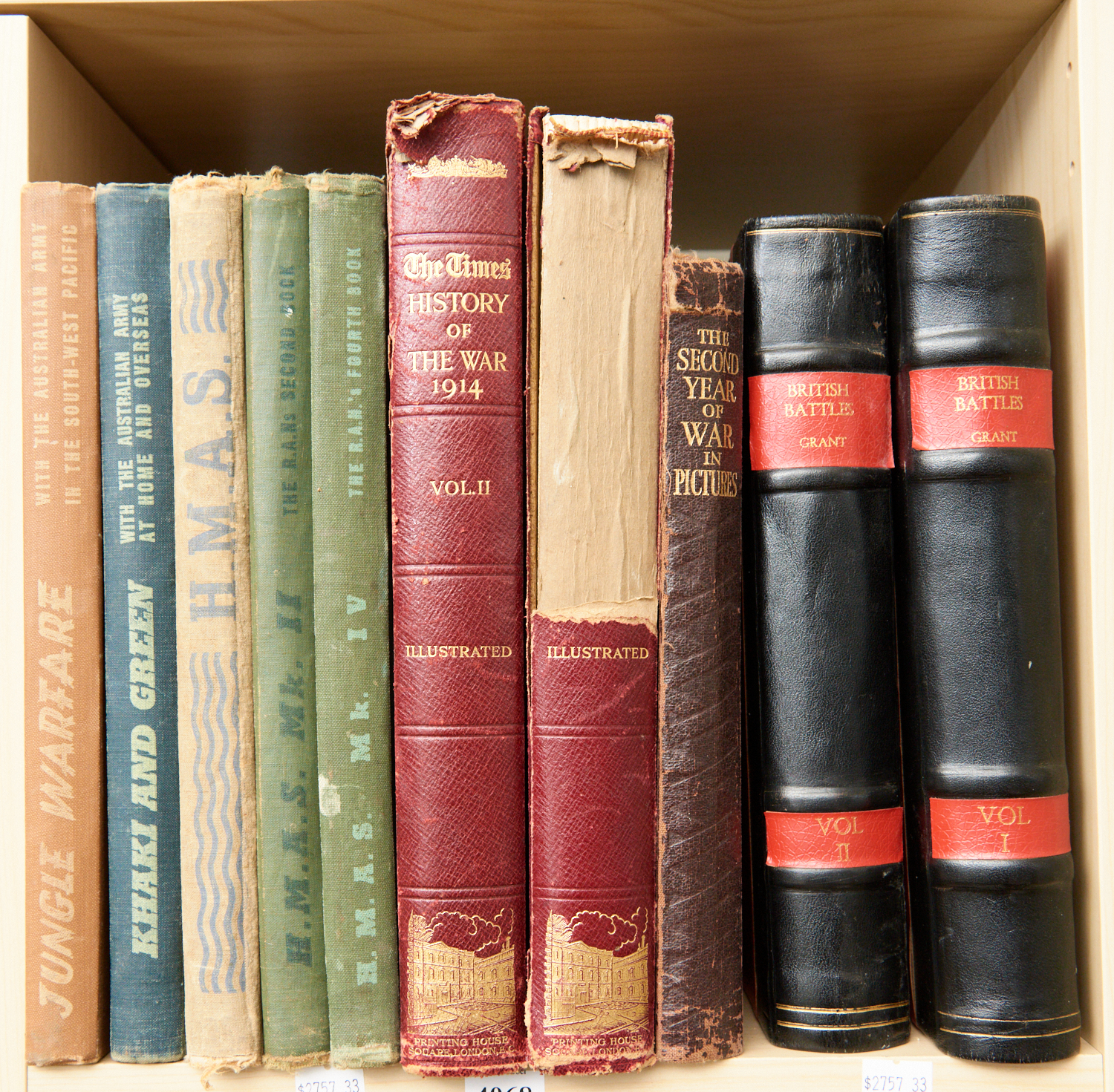 A COLLECTION OF BOOKS ON AUSTRALIAN MILITARY HISTORY AND EUROPEAN HISTORY, INCLUDING GRANT'S BRITISH BATTLES, VOL I AND II, HMAS - FEAR GOD HONOUR THE KING, AND KHAKI AND GREEN - WITH THE AUSTRALIAN ARMY AT HOME AND OVERSEAS