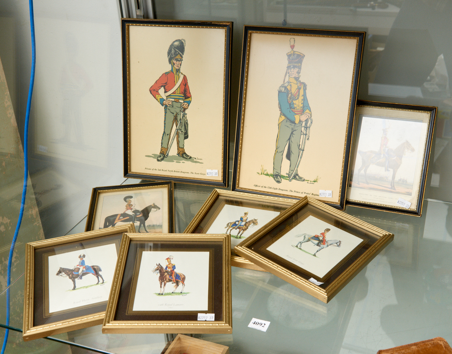 A COLLECTION OF EIGHT FRAMED FACSIMILE PORTRAITS OF BRITISH SOLDIERS IN FORMAL UNIFORM