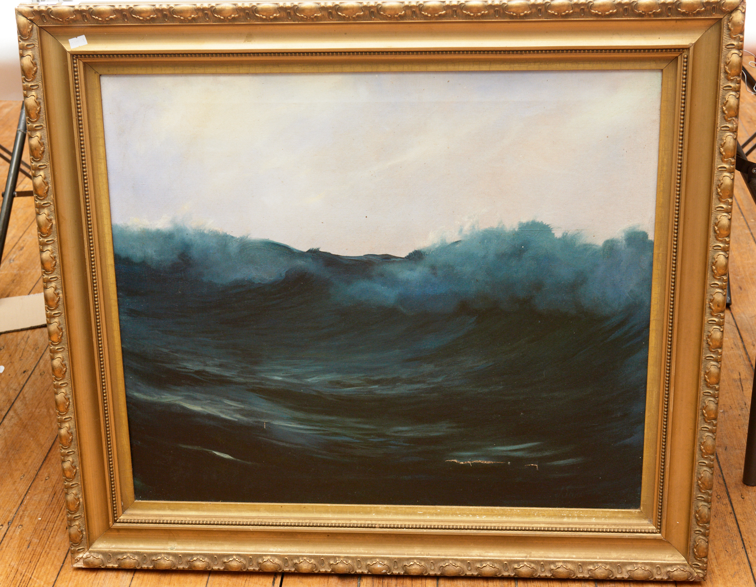 A GILT FRAMED SEASCAPE OIL ON CANVAS (TEAR)