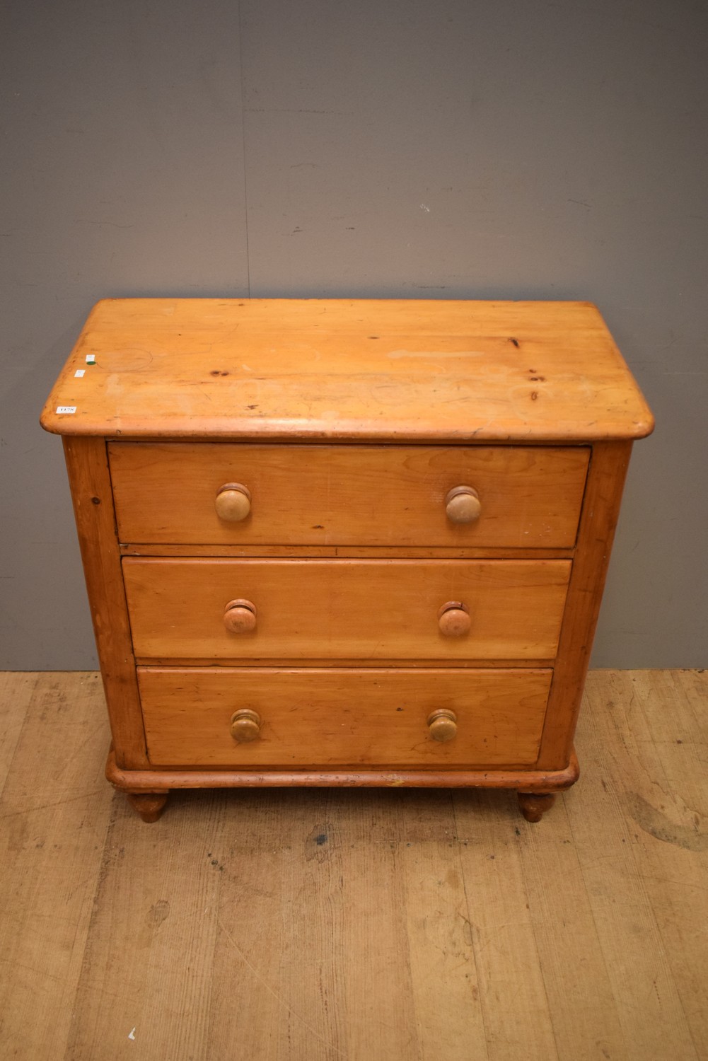 A THREE DRAWER CHEST OF DRAWERS (87H X 86W X 43D)