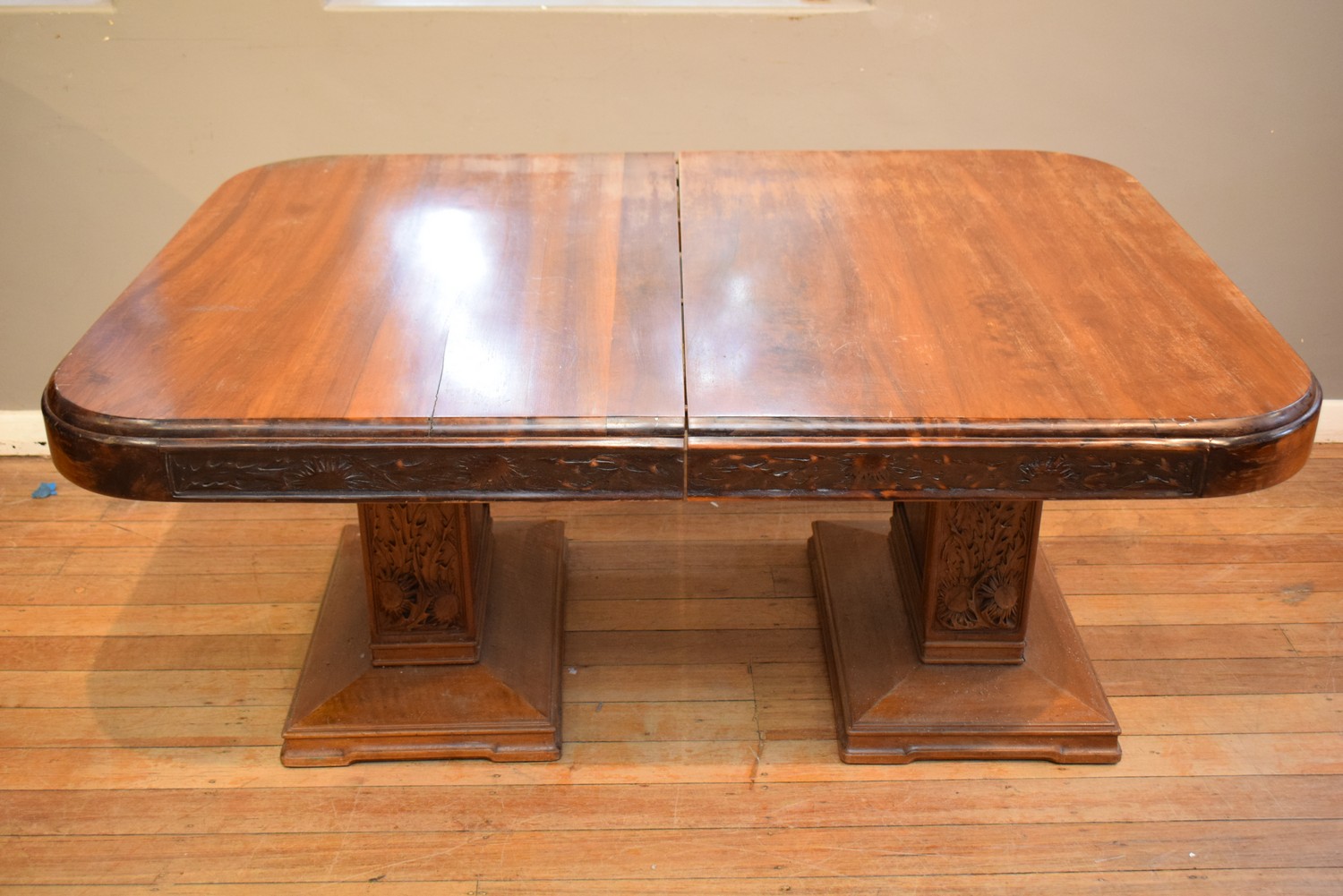 A CARVED TIMBER PEDESTAL TABLE WITH THISTLE MOTIF (A/F)