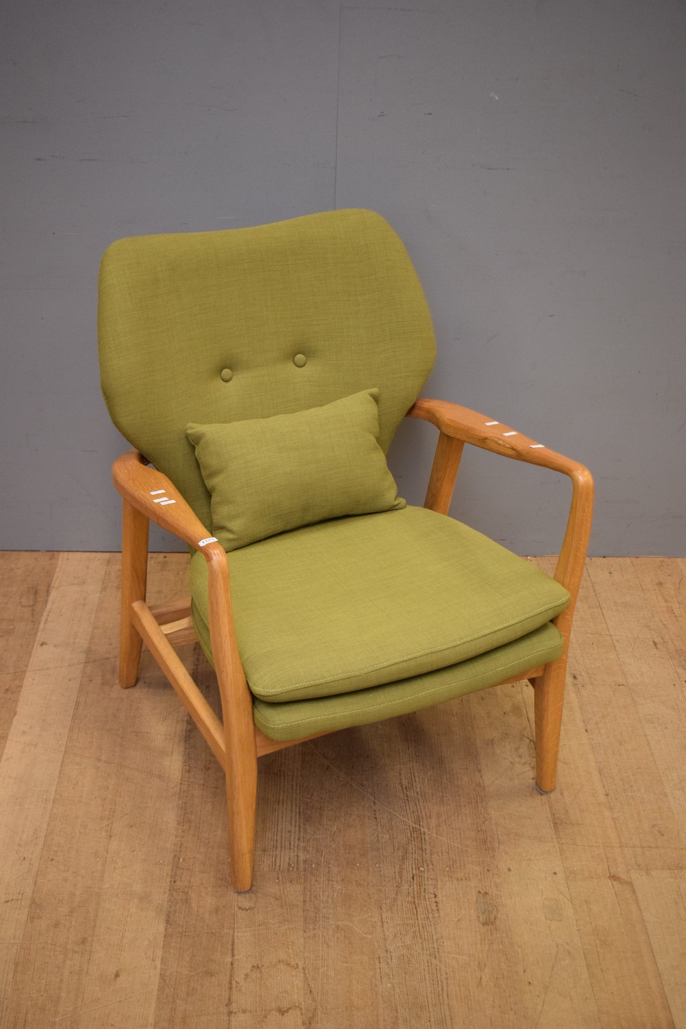 A MID-CENTURY STYLE GREEN UPHOLSTERED CHAIR