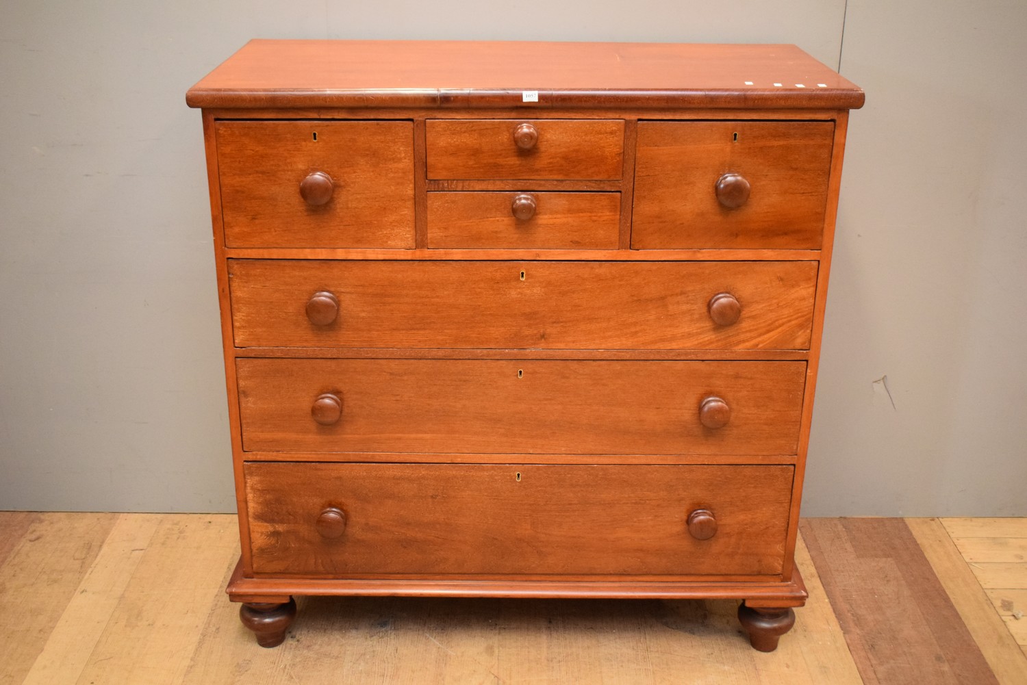 A VICTORIAN SEVEN DRAWER CHEST OF DRAWERS (119H X 117W X 53D CM)