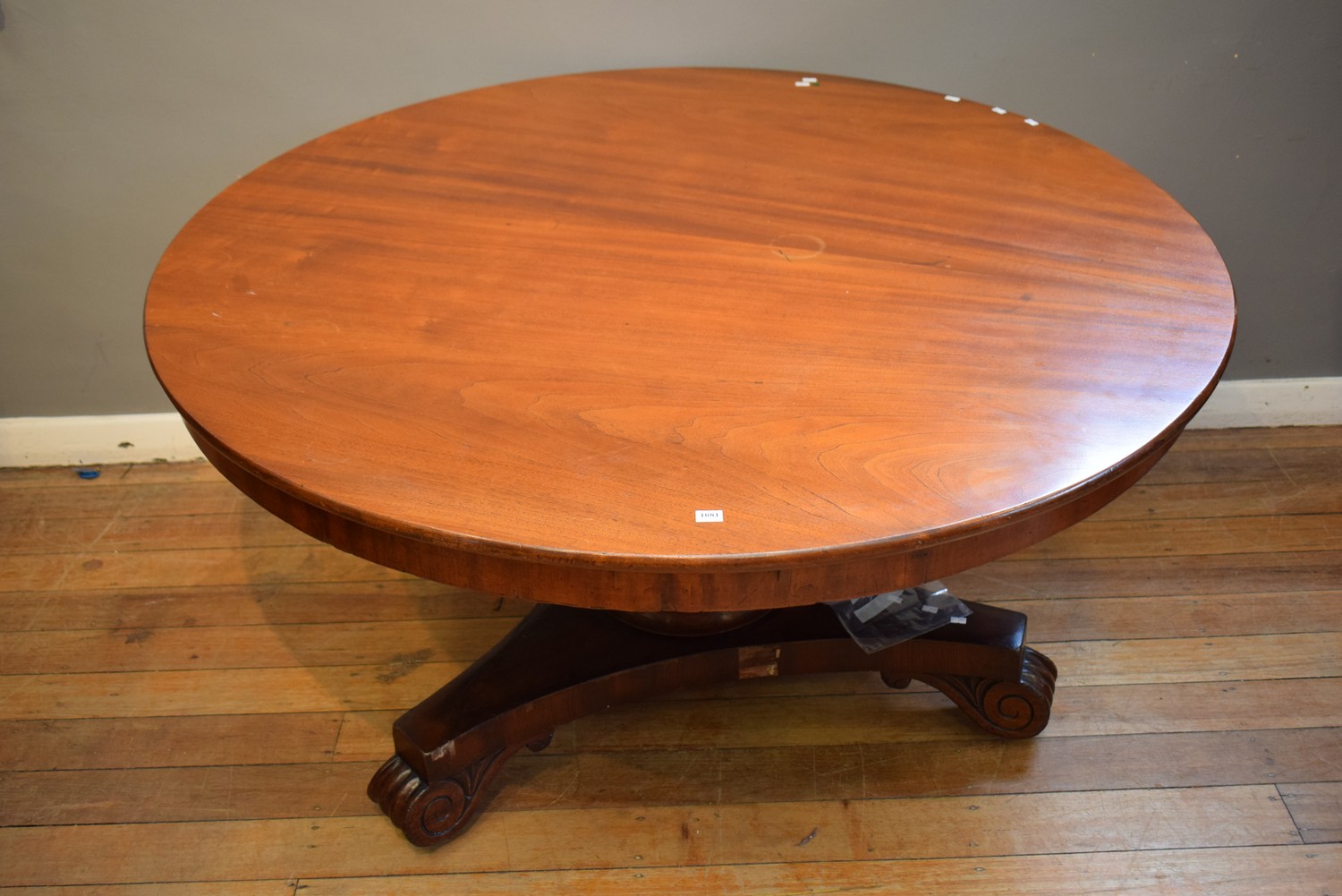 A VICTORIAN CIRCULAR BREAKFAST TABLE (75H x 137D CM) (a/f loose veneer)