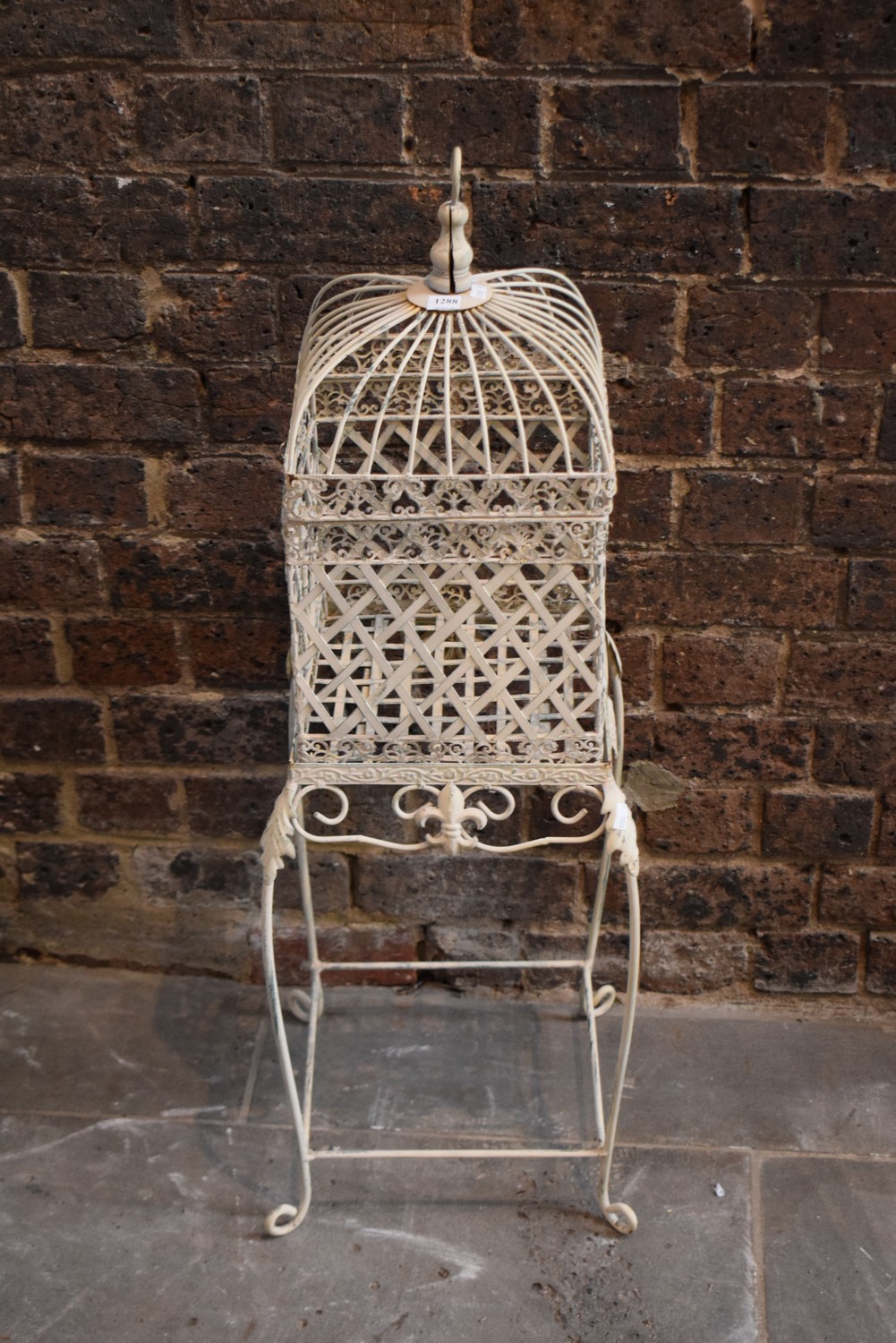 A WIRE BIRD CAGE ON STAND