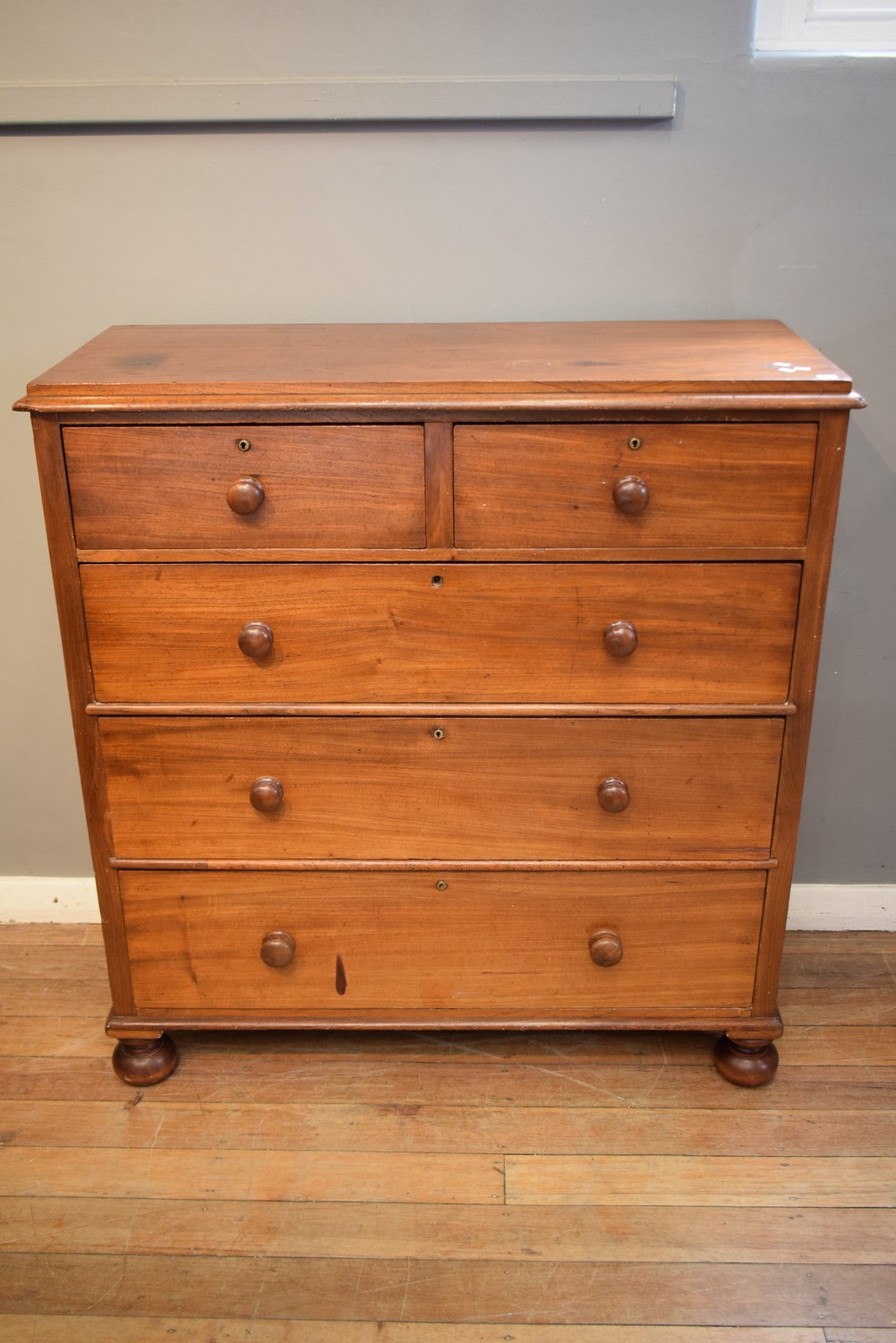 A CEDAR FIVE DRAWER CHEST OF DRAWERS (123H X 116W X 48D CM) (PLEASE NOTE THIS ITEM MUST BE REMOVED BY CLIENTS OR CARRIERS AT THE CUSTOMERS EXPENSE)