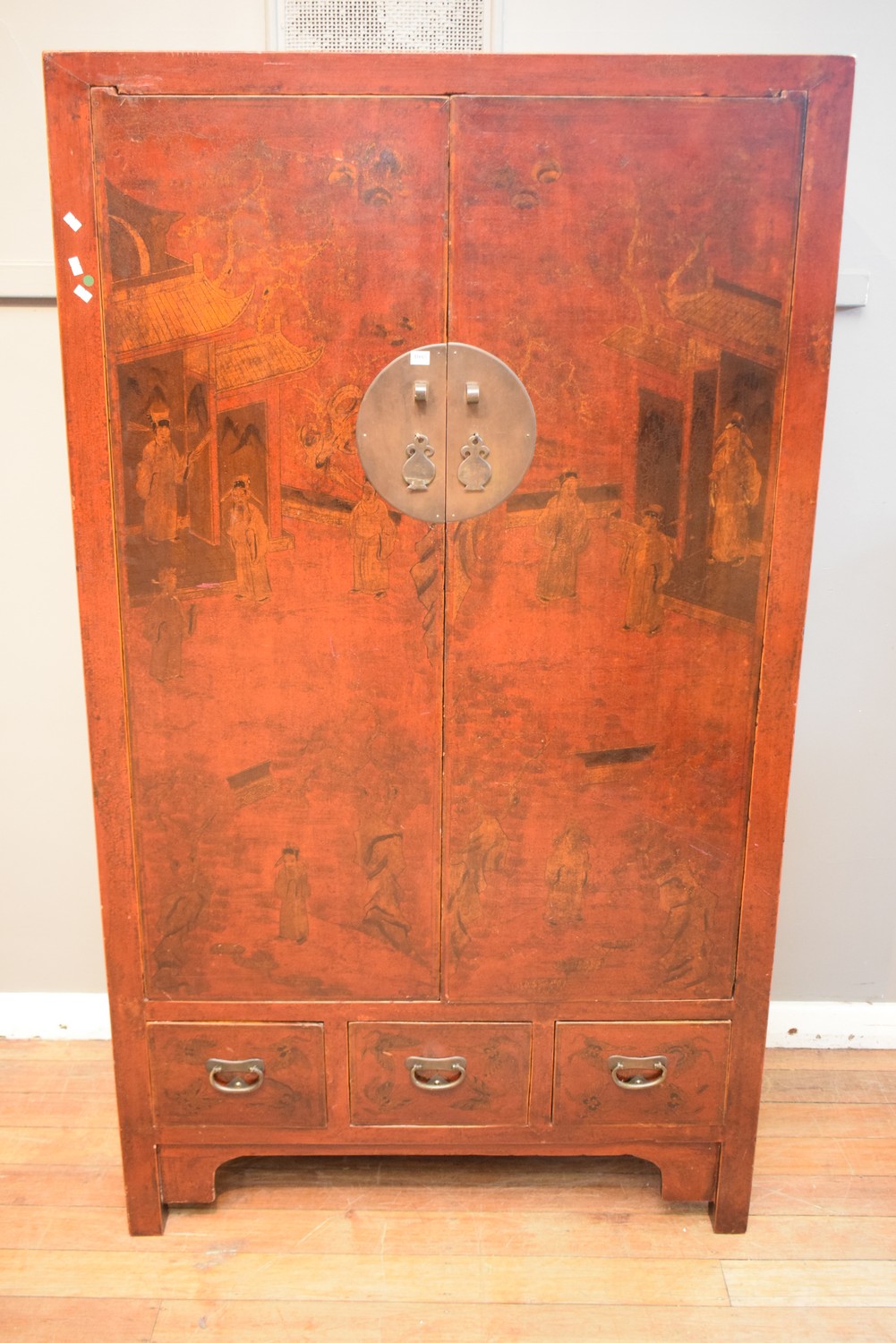 A CHINESE LACQUERED TWO DOOR CABINET (187H X 105W X 56D)