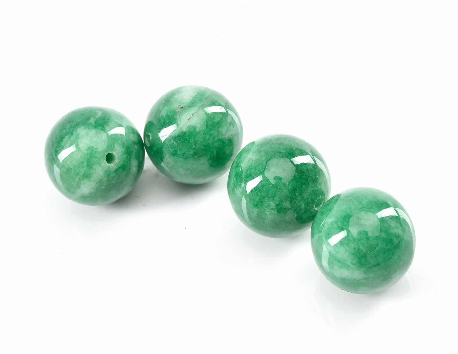 FOUR LOOSE JADEITE BEADS, EACH APPROXIMATELY 15MM DIAMETER