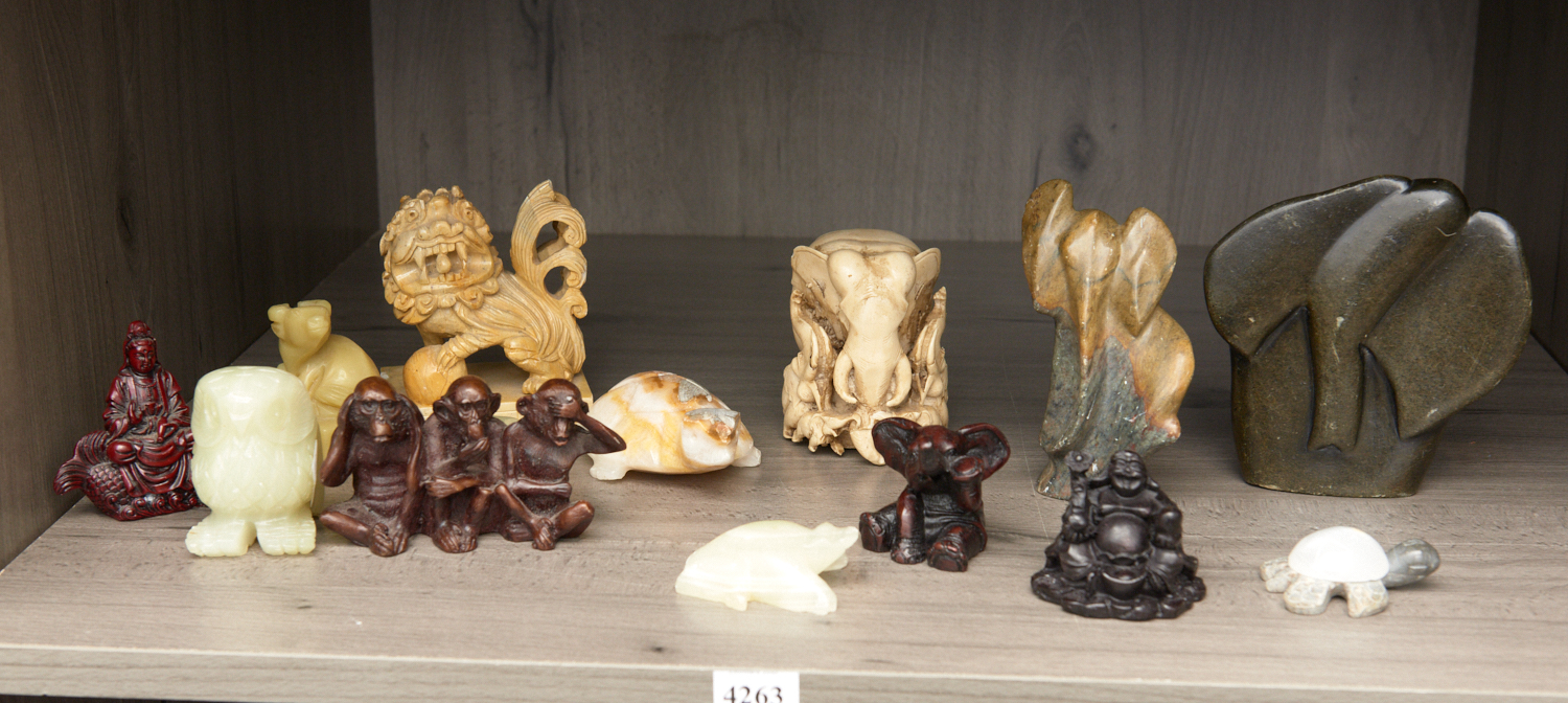 A COLLECTION OF STONE AND RESIN ORIENTAL ANIMAL FIGURES