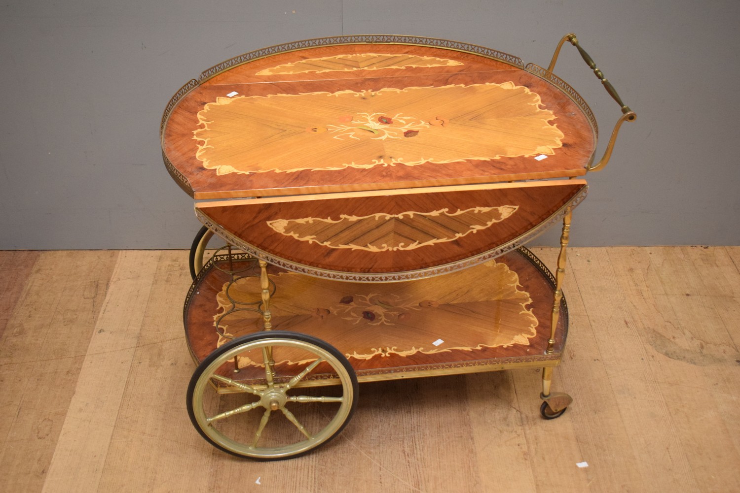 A 1950'S DROPSIDE AUTO TROLLEY WITH TIMBER INLAY (71H X 81W X 80D)