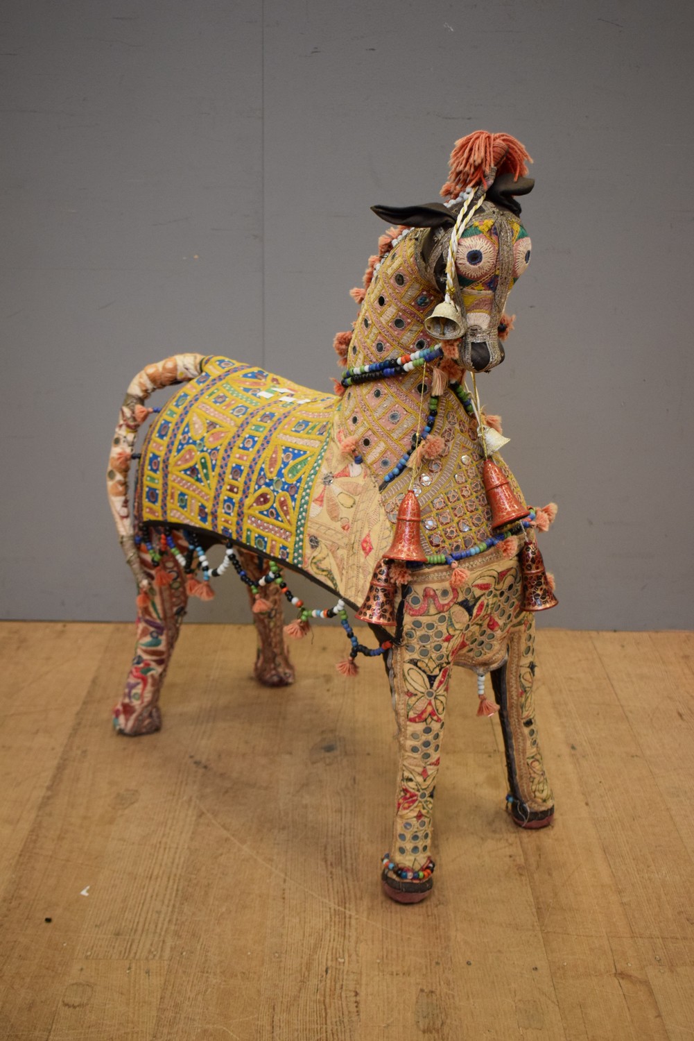 A 1950S PORTUGESE HORSE WITH MIRROR AND EMBOSSED DECORATIONS (88H x 75W CM)