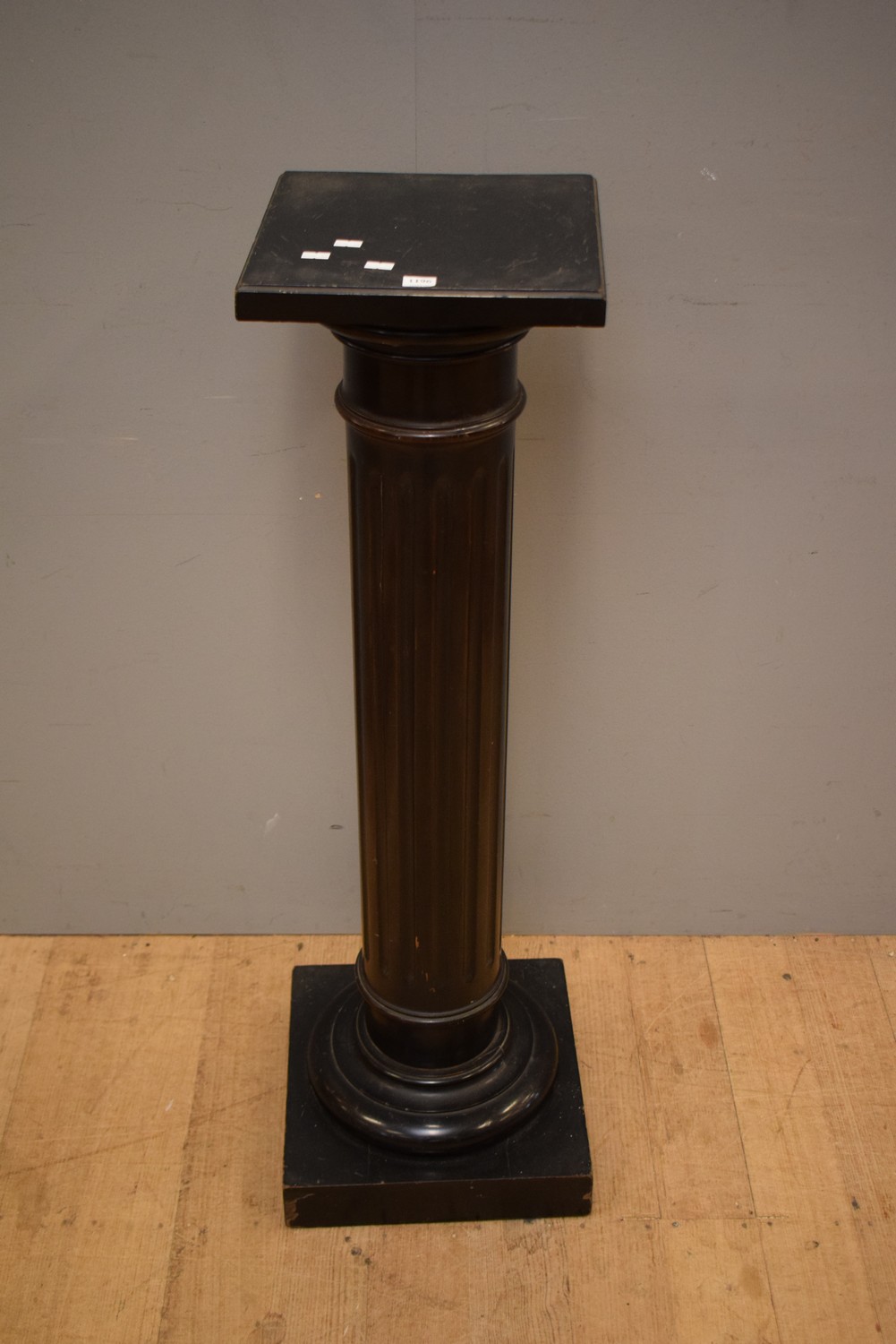 A LATE VICTORIAN EBONISED FLUTED STEM PEDESTAL (107H X 29W X 29D)
