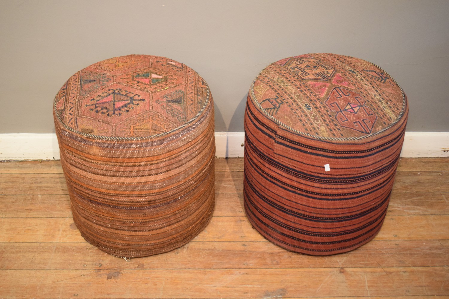 TWO HANDMADE KILIM OTTOMANS (52H x 48D CM)