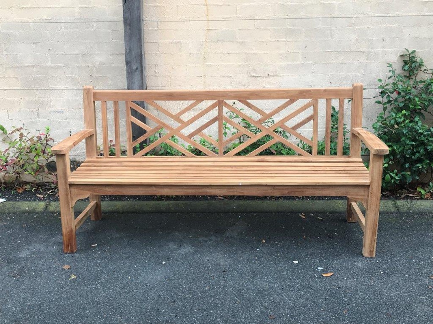 A TEAK GARDEN BENCH SEAT (187W X 62D X 92H CM)
