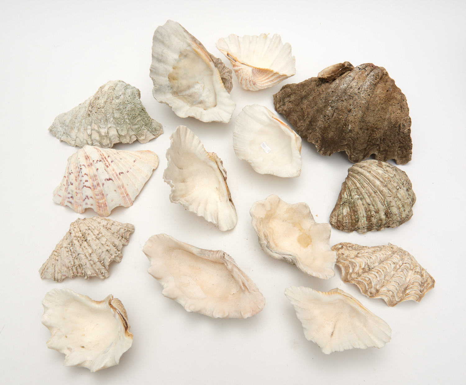 A COLLECTION OF 14 LARGE CLAM SHELLS