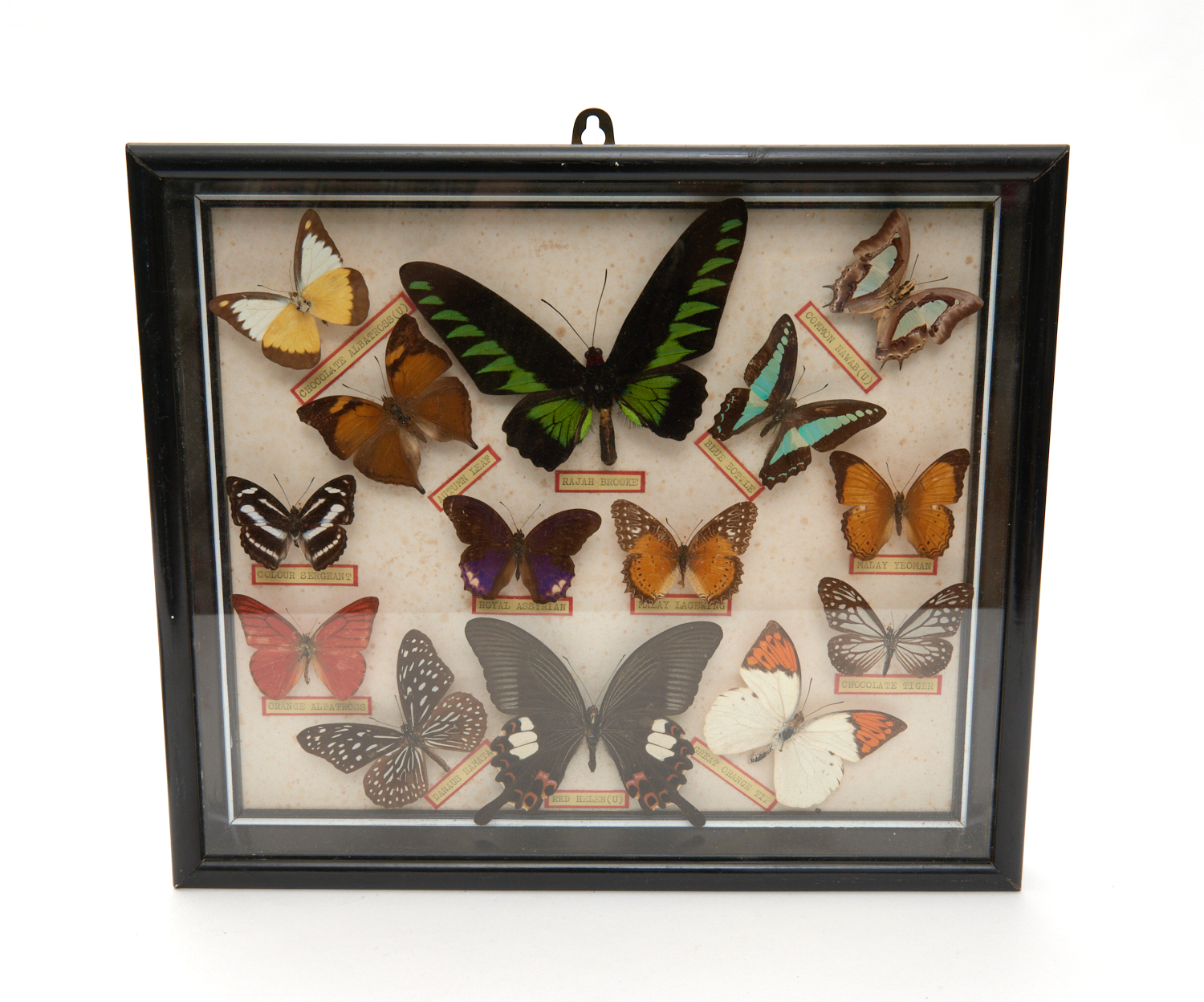 A 1940S FRAMED SET OF BUTTERFLIES 30 X 35CM