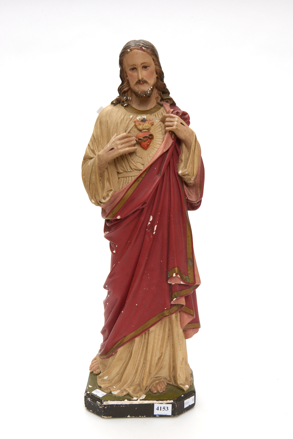 A 19TH CENTURY POLYCHROME PAINTED FRENCH PLASTER JESUS STATUE H.54CM