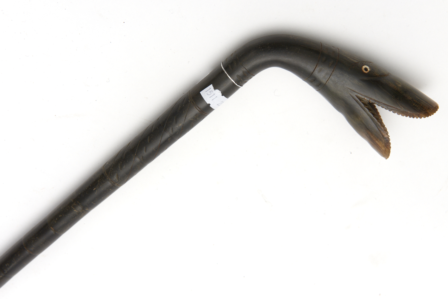 A 1900S HORN FISH HEAD WALKING STICK L.94CM