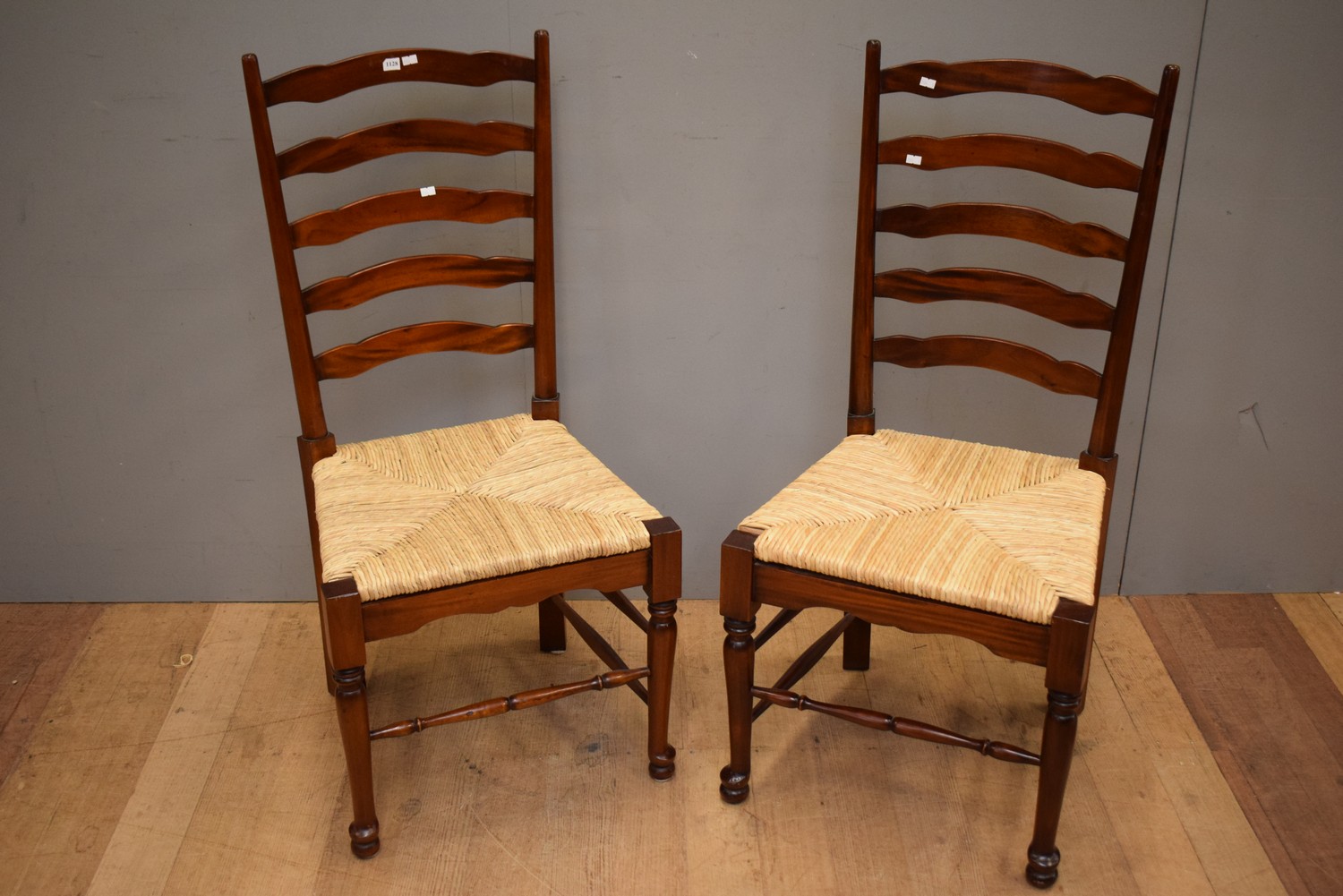A PAIR OF LADDER BACK DINING CHAIRS WITH RUSH SEATING