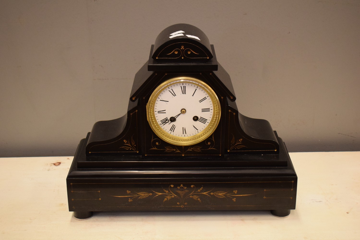 A SLATE MARBLE MANTLE CLOCK