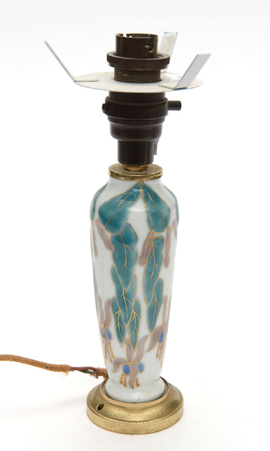 A LIMOGES GILT METAL MOUNTED PORCELAIN LAMP BASE, (REWIRING REQUIRED) PLEASE NOTE, THE ELECTRICAL CORD HAS BEEN CUT FOR SAFETY AND IS NOT AS PICTURED ONLINE