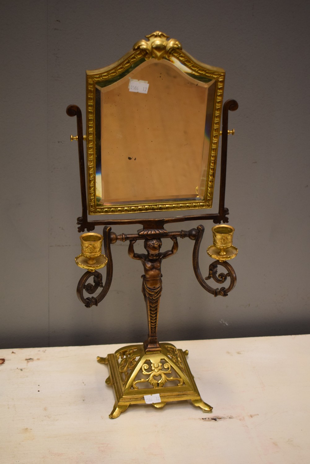 A BRASS MANTLE MIRROR WITH CHERUB MOTIF