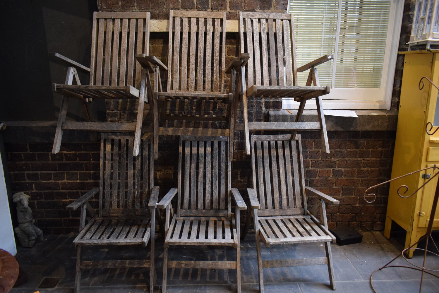 A SET OF SIX TEAK FOLDABLE OUTDOOR CHAIRS (a/f)