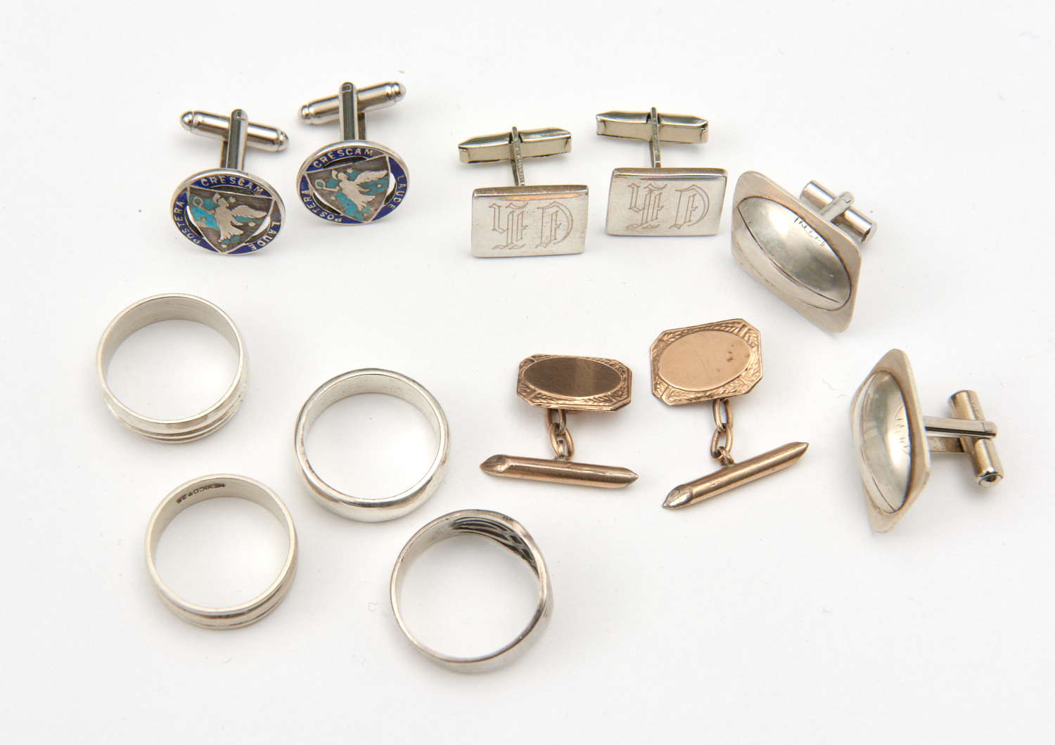 A COLLECTION OF STERLING SILVER CUFFLINKS AND RINGS