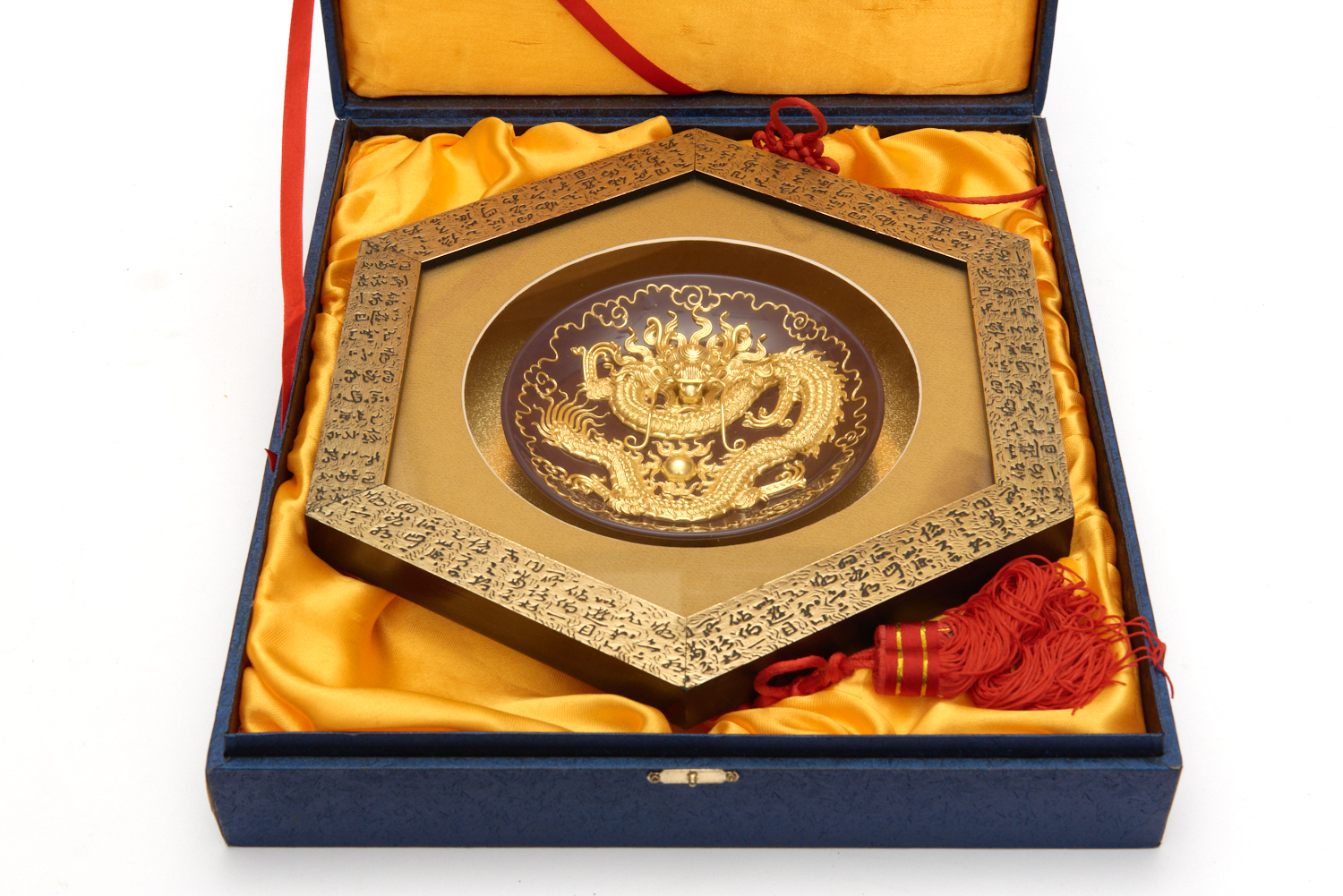 A CASED GILT CHINESE DRAGON BOWL