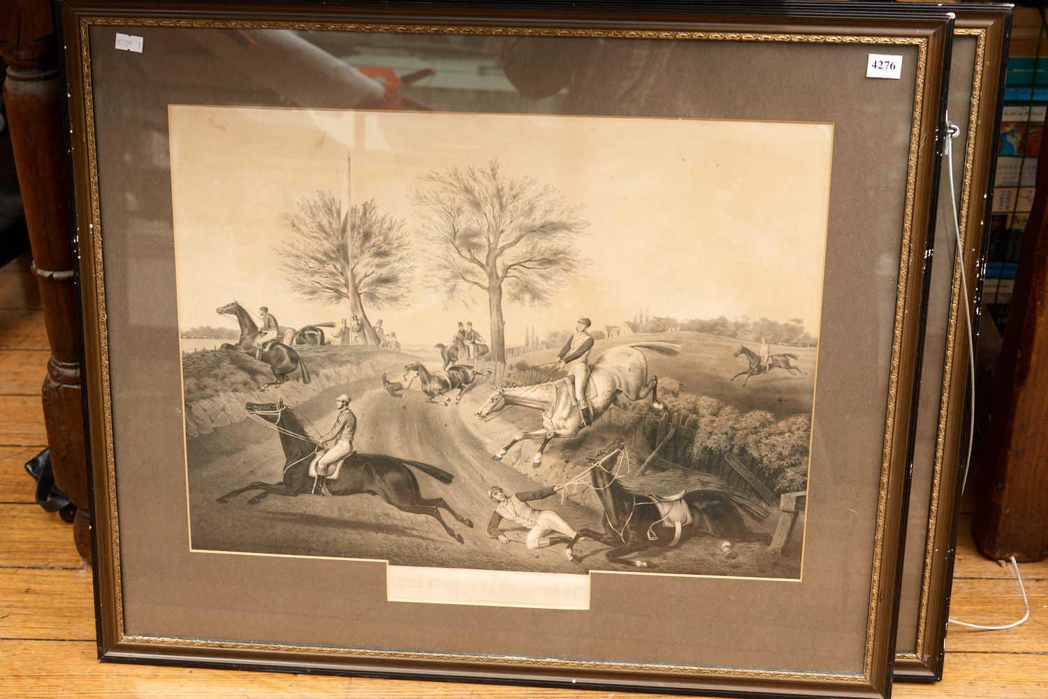 TWO FRAMED ETCHINGS 38 X 51CM , 'THE STEEPLE CHASE'
