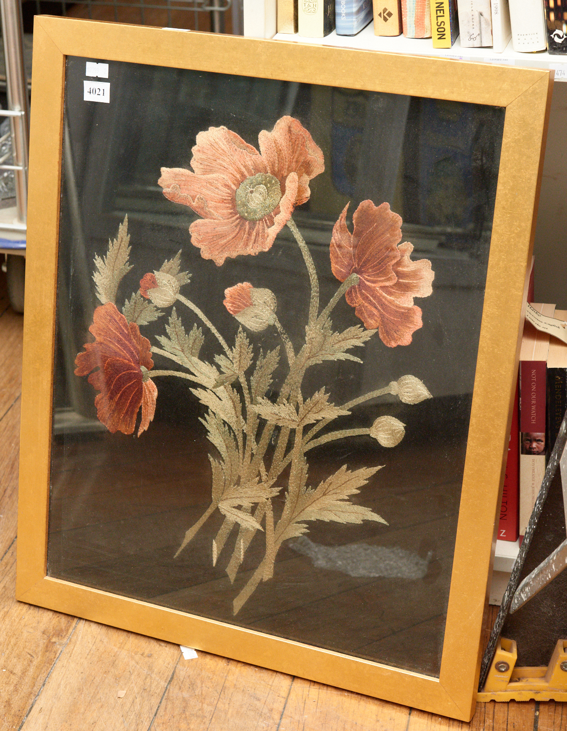 A FRAMED FLORAL EMBROIDERY