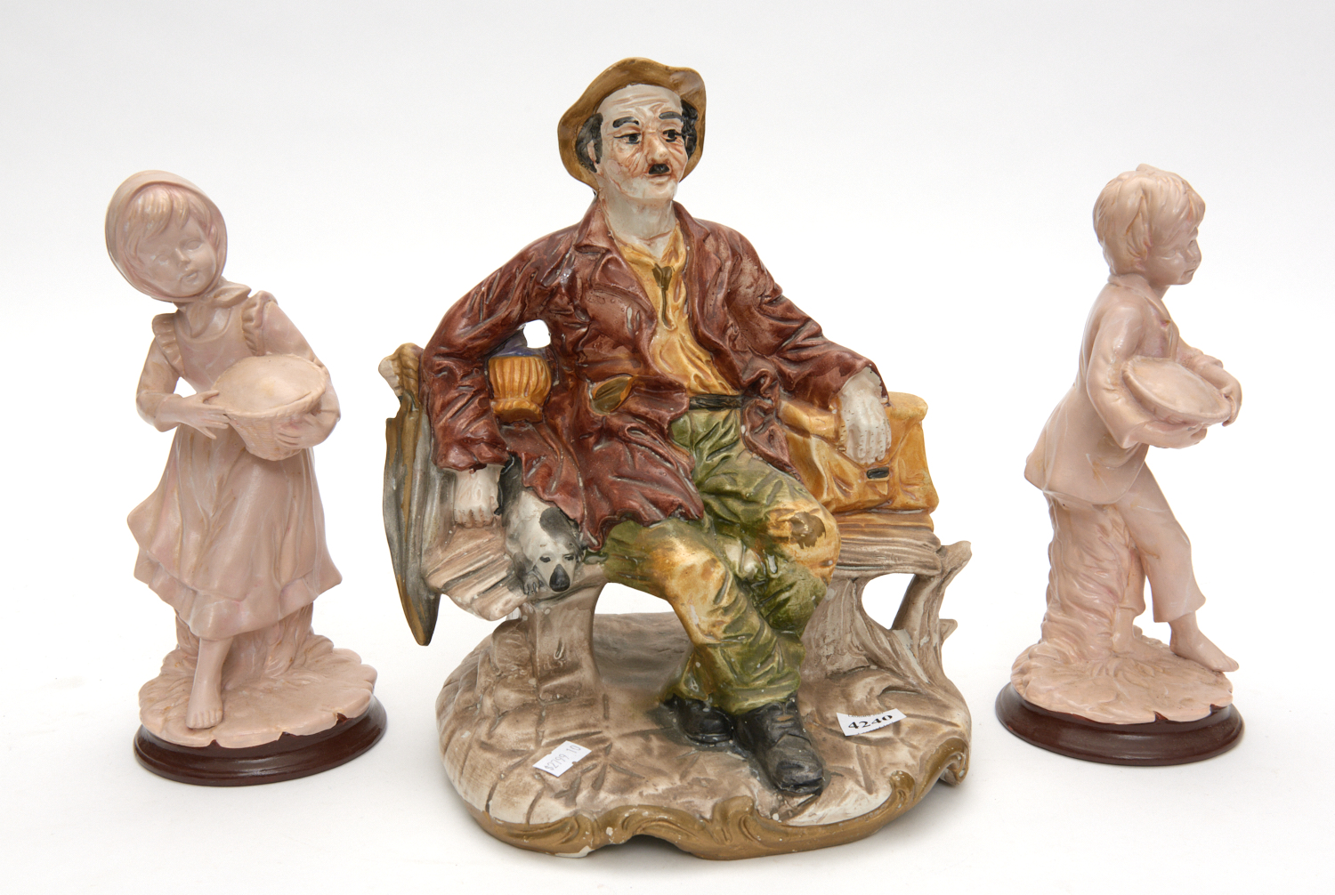 A CAPODIMONTE FIGURE OF SEATED MAN TOGETHER WITH TWO CHILDREN