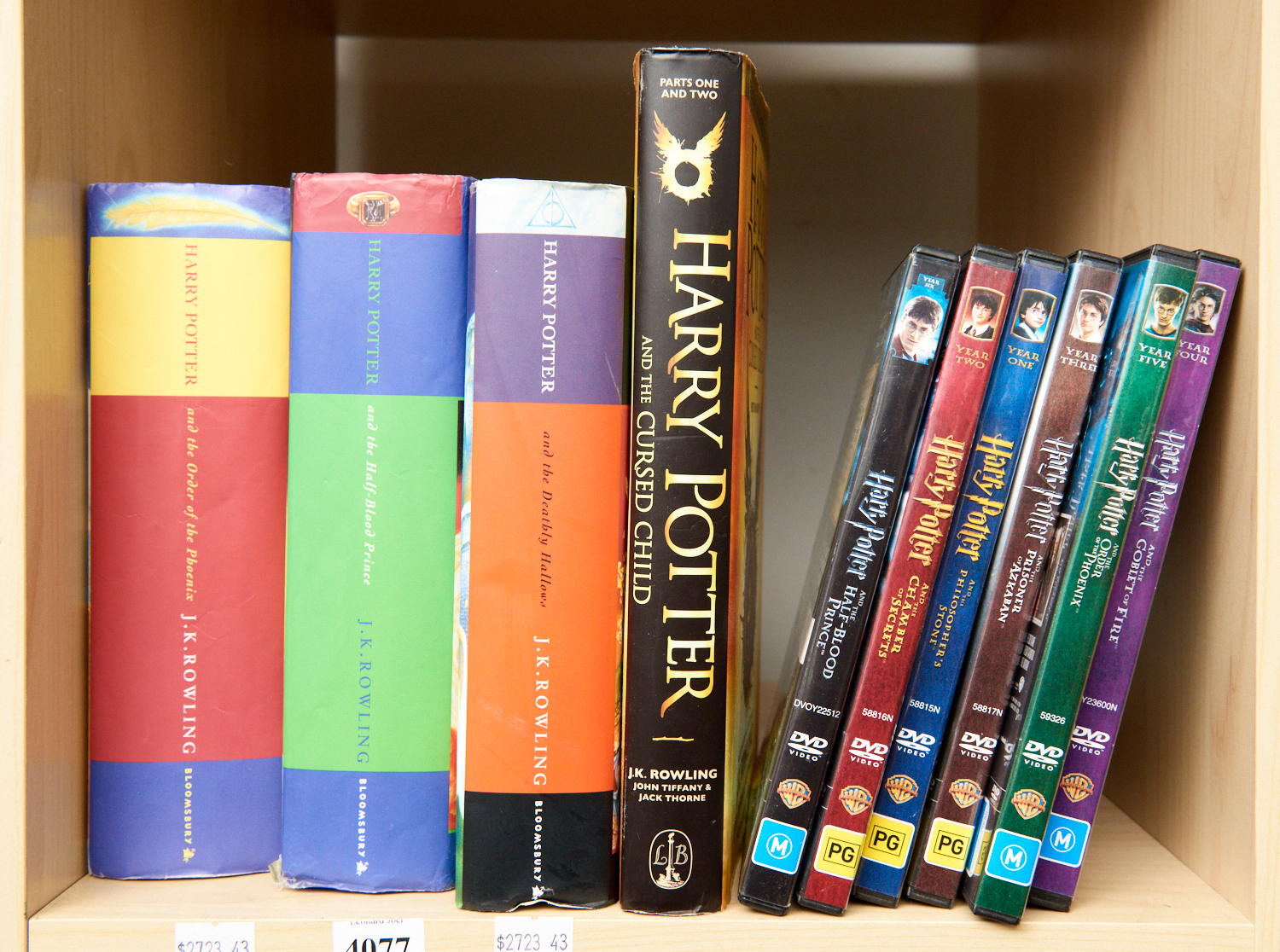A COLLECTION OF HARRY POTTER NOVELS, INCLUDING HARRY POTTER AND THE ORDER OF THE PHOENIX, HARRY POTTER AND THE HALF-BLOOD PRINCE, AND HARRY POTTER AND THE DEATHLY HALLOW, TOGETHER WITH SIX HARRY POTTER DVDS