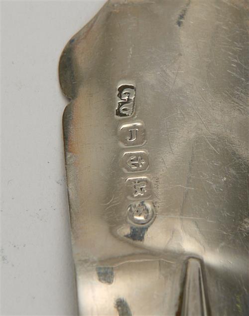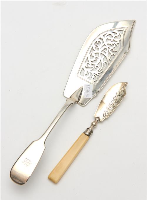 A STERLING SILVER FISH SERVER TOGETHER WITH STERLING SILVER BUTTER KNIFE, THE FISH SERVER APPROXIMATELY 126 GMS