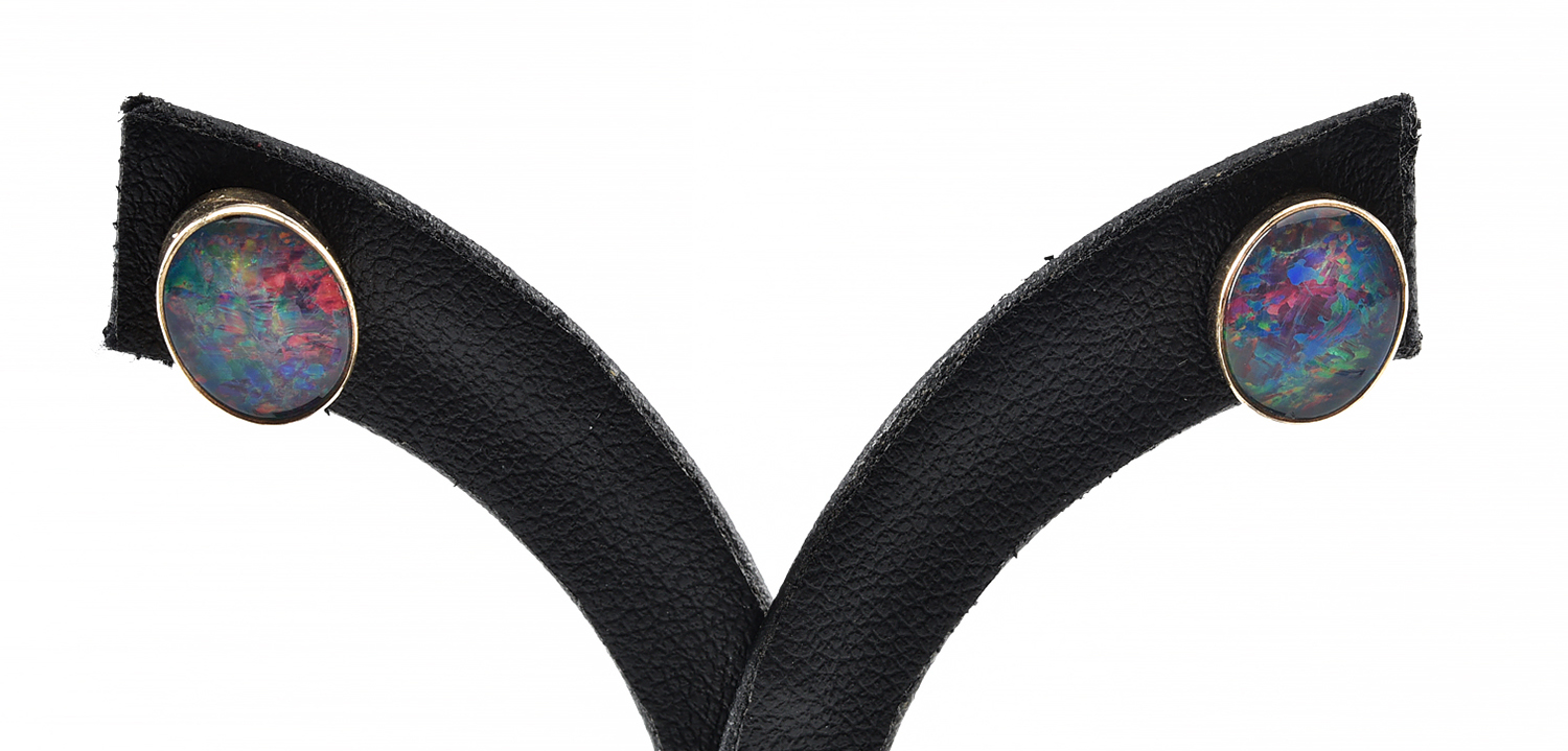 A PAIR OF OPAL TRIPLET STUD EARRINGS IN 9CT GOLD, DIMENSIONS 10.8MM X 8.5MM.