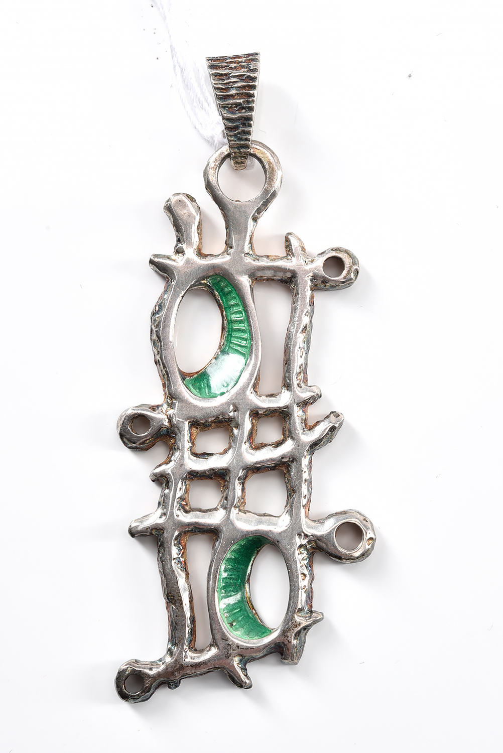 AN ENAMELLED PENDANT IN STERLING SILVER, DIMENSIONS 60MM X 25MM