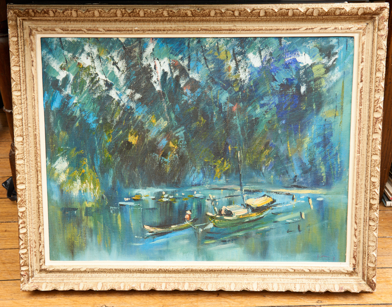 A VINTAGE 1960S ASIAN PAINTING 49 X 64CM